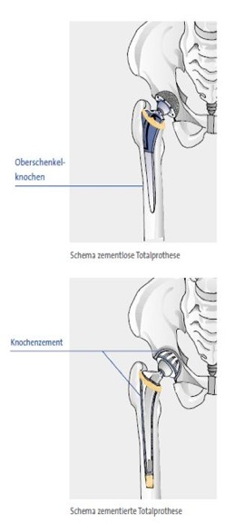 Das künstliche Hüftgelenk versucht, den Hüftkopf und die Gelenkpfanne des natürlichen Hüftgelenkes, welches sich durch Abnutzungskrankheit oder Unfallfolgen verändert hat, zu ersetzen. Die Materialien und Oberflächeneigenschaften der Hüftprothese wurden dem Körper physiologisch möglichst nahe angepasst. Die Prothesen bestehen im Wesentlichen aus Metalllegierungen mit besonderen Oberflächeneigenschaften, welche ein direktes Anwachsen des Knochens an die Prothese ermöglichen oder Knochenzement wird verwendet als Haftmittel zwischen dem Knochen und dem Prothesenelement bei nicht mehr ganz optimaler Knochenqualität. Die Auswahl der Prothese richtet sich nach der Knochenform, dem Kalksalzgehalt, dem Gewicht und dem körperlichen Aktivitätsniveau.